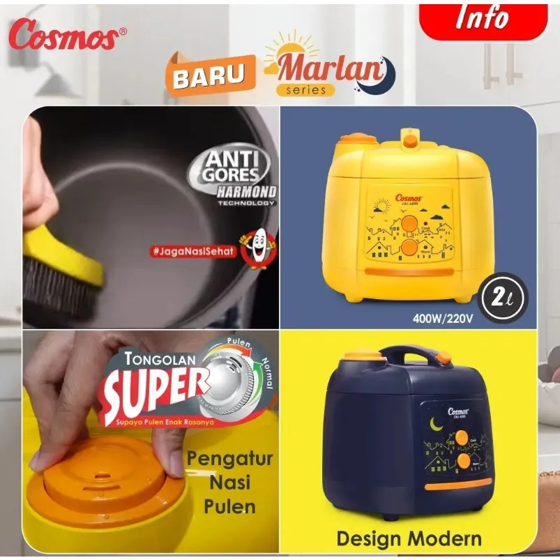 Cosmos Rice Cooker CRJ-6500-R – Magic Com Harmond 2 Liter 400 Watt 3in1 Marlan Rembulan Blue