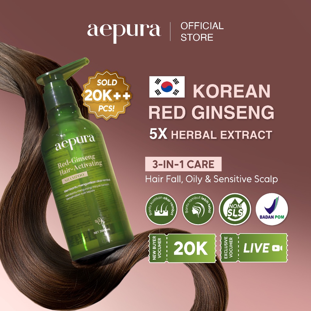 aepura Red-Ginseng Hair Activating Shampoo 300ml | BPOM Memperkuat Akar Rambut Mempercepat Pertumbuhan Menutrisi Rambut
