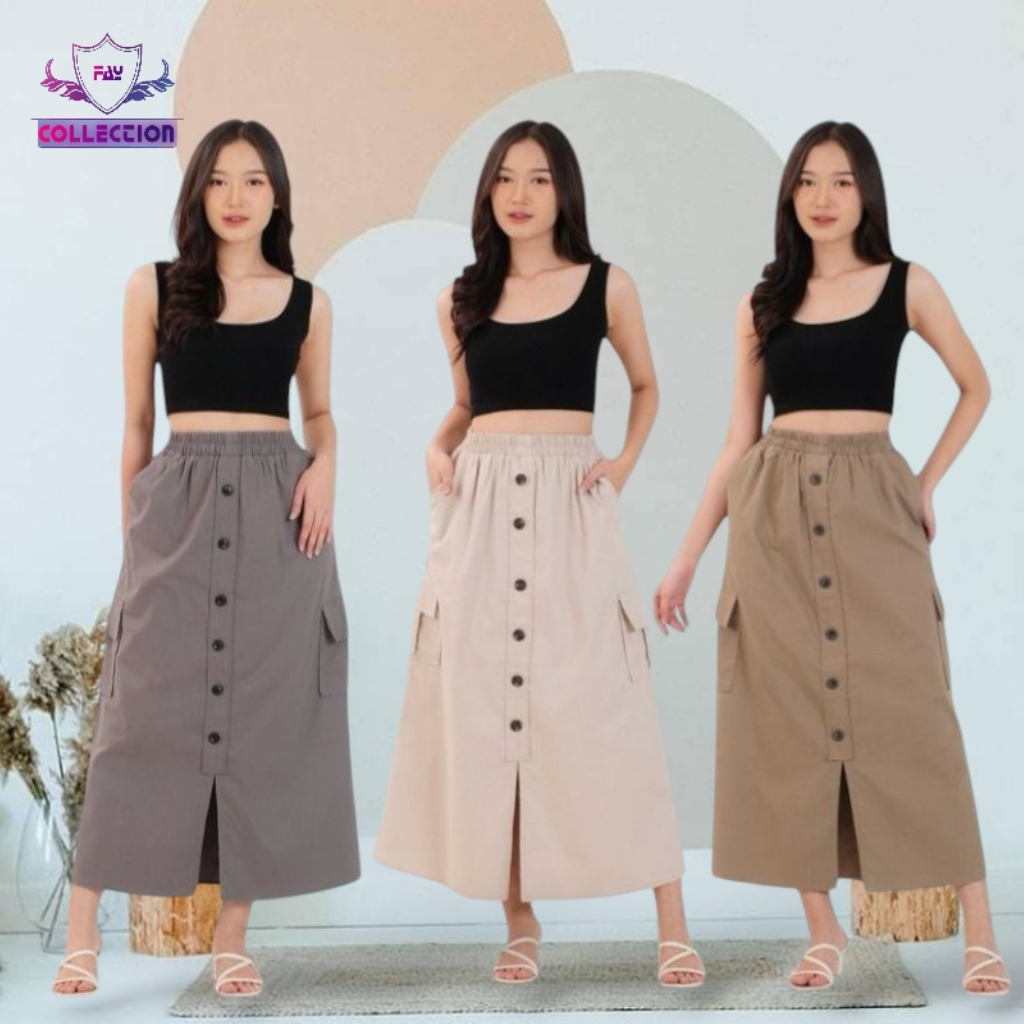 Paket 3pcs - Rok Cargo Kancing Wanita Twill Combed Premium | Cargo Skrit Korean Style