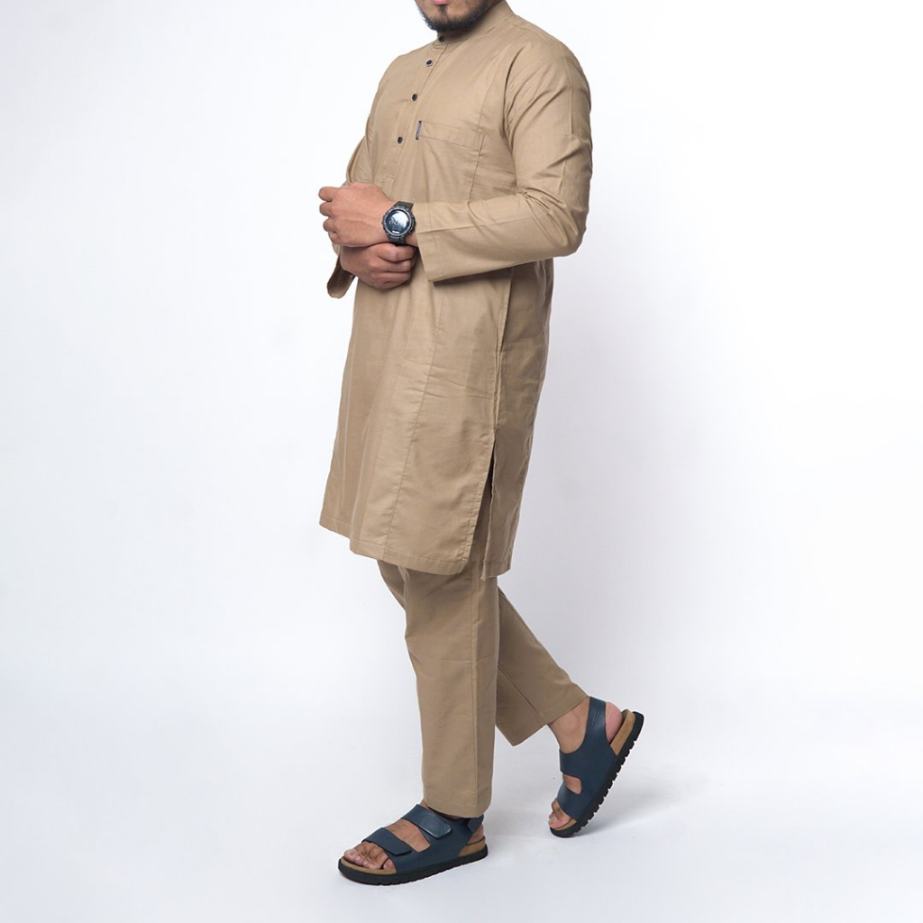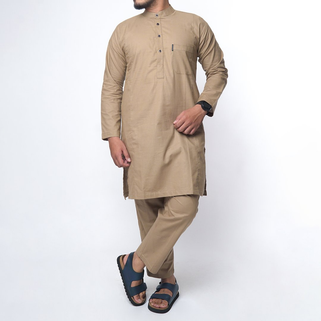 KHOIRUMMAH Kurta Khaidar Set | Koko Kurta Polos Stelan | Baju Muslim Set Pria Lengan panjang | Cream