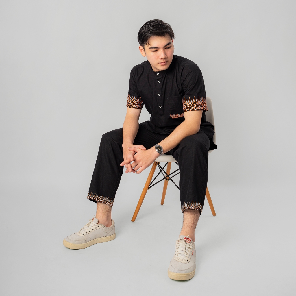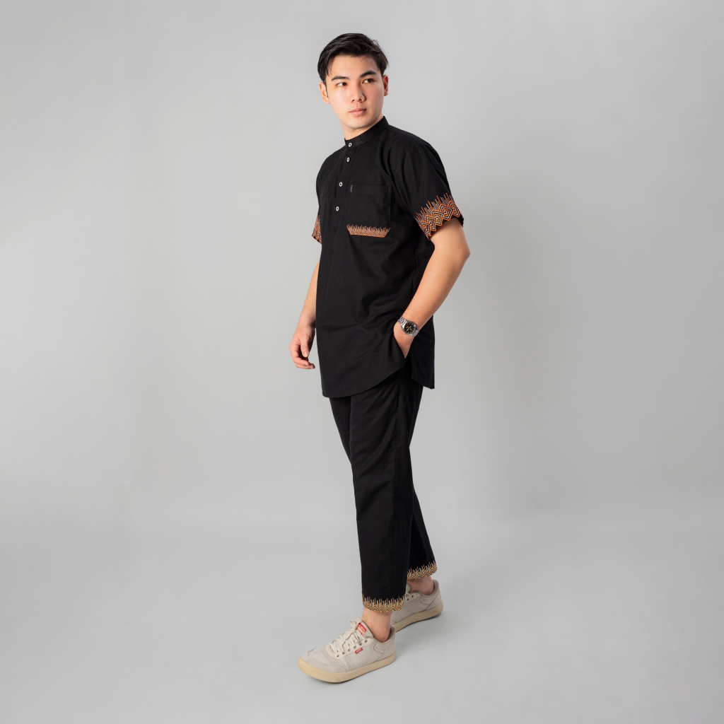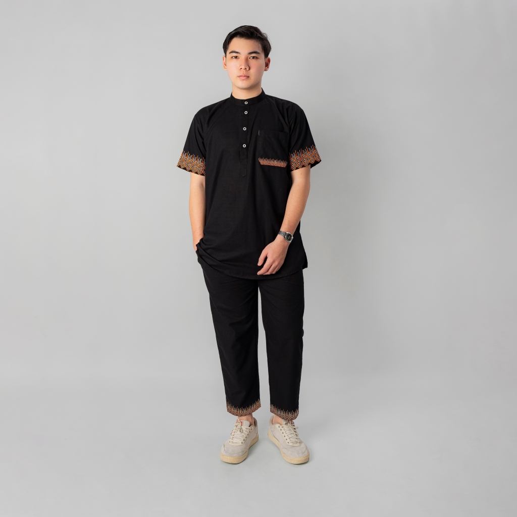 KATSAE - Oneset Basel Pria Dewasa Setelan Baju celana Muslim | Set Kemeja Koko Kurta Bordir Premium Warna Hitam