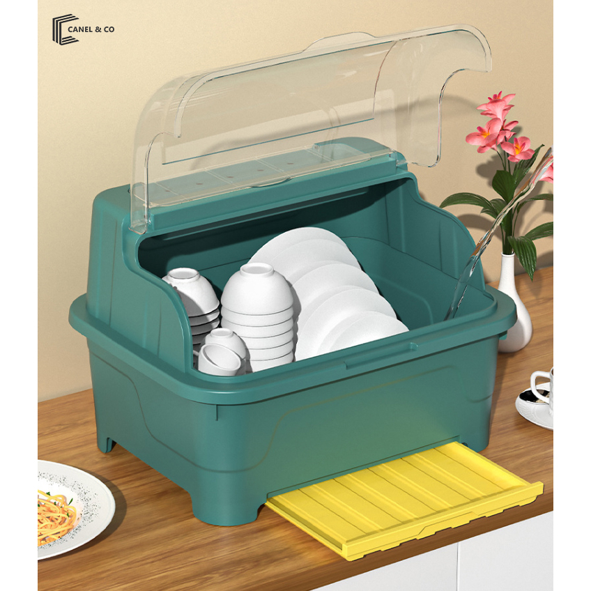 CANEL & CO Tutup Rak Piring Plastik / Rak Pengering Air Mangkok rak piring Dengan Tutup Rak / Mangkok/Sendok/ Garpu Rak