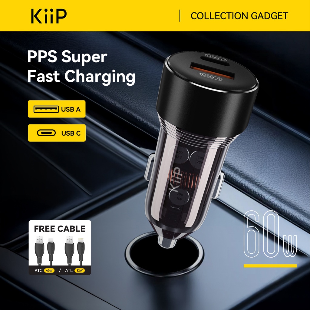 FLASH SALE KiiP C15 Charger Mobil 60W Type C PD+USB Quick Charge 3.0 PPS PD