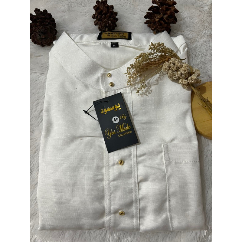 BISA /STELAN MELAYU PRIA MALAYSIA TELUK BELANGA BAJU KOKO MELAYU HIGH QUALITY PUTIH BERSIH