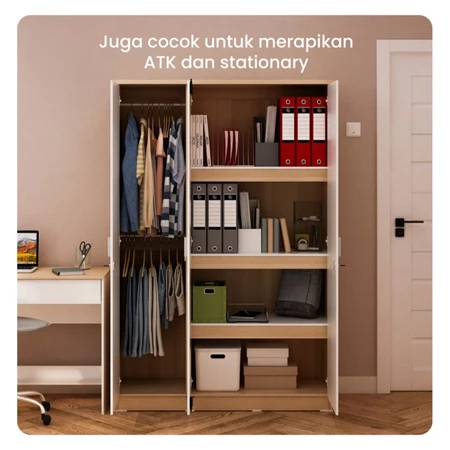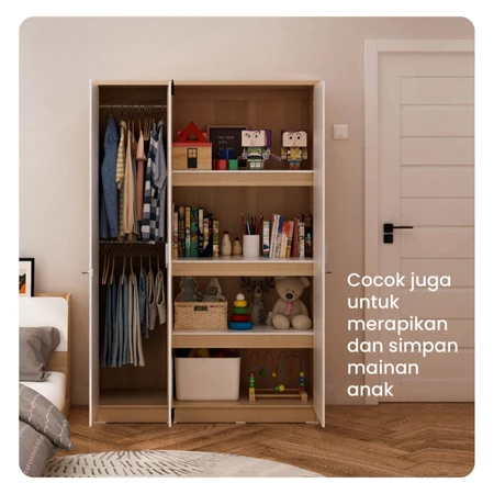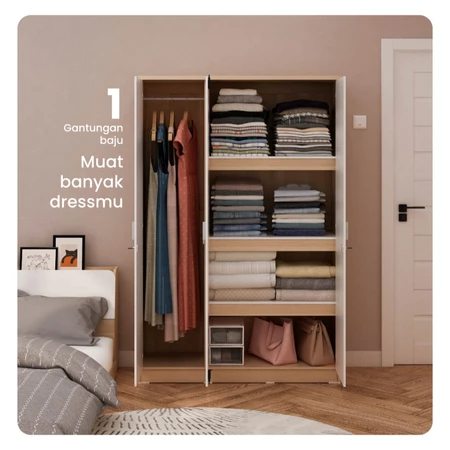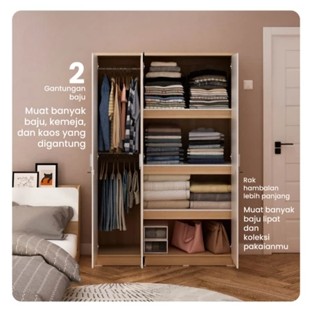 Lemari Pakaian 3 Pintu Medium Full Rak Muat Banyak Penyimpanan Lemari Baju Terbaru Termurah