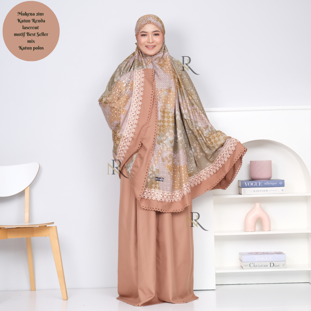 Nai-Rhu-Mukena Dewasa 2in1 Katun Renda Motif Printing Terlaris Mix Polos Laser cut KanayaSeries