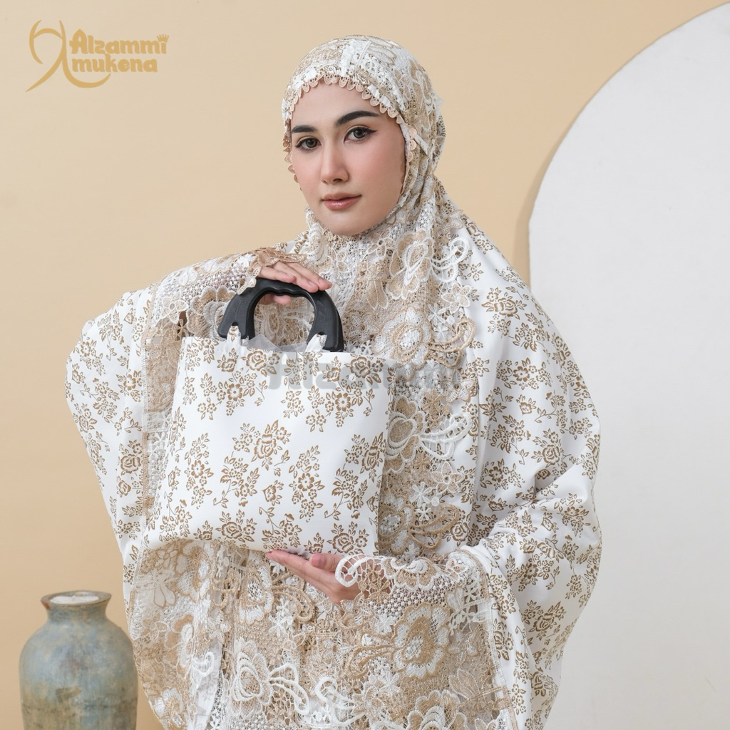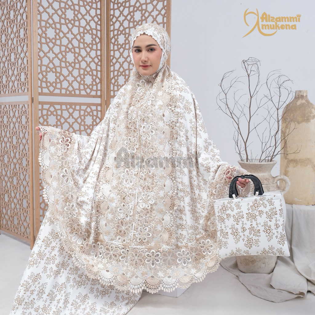 Mukena Dewasa Ameera Bahan Katun Foil Renda Mewah Full