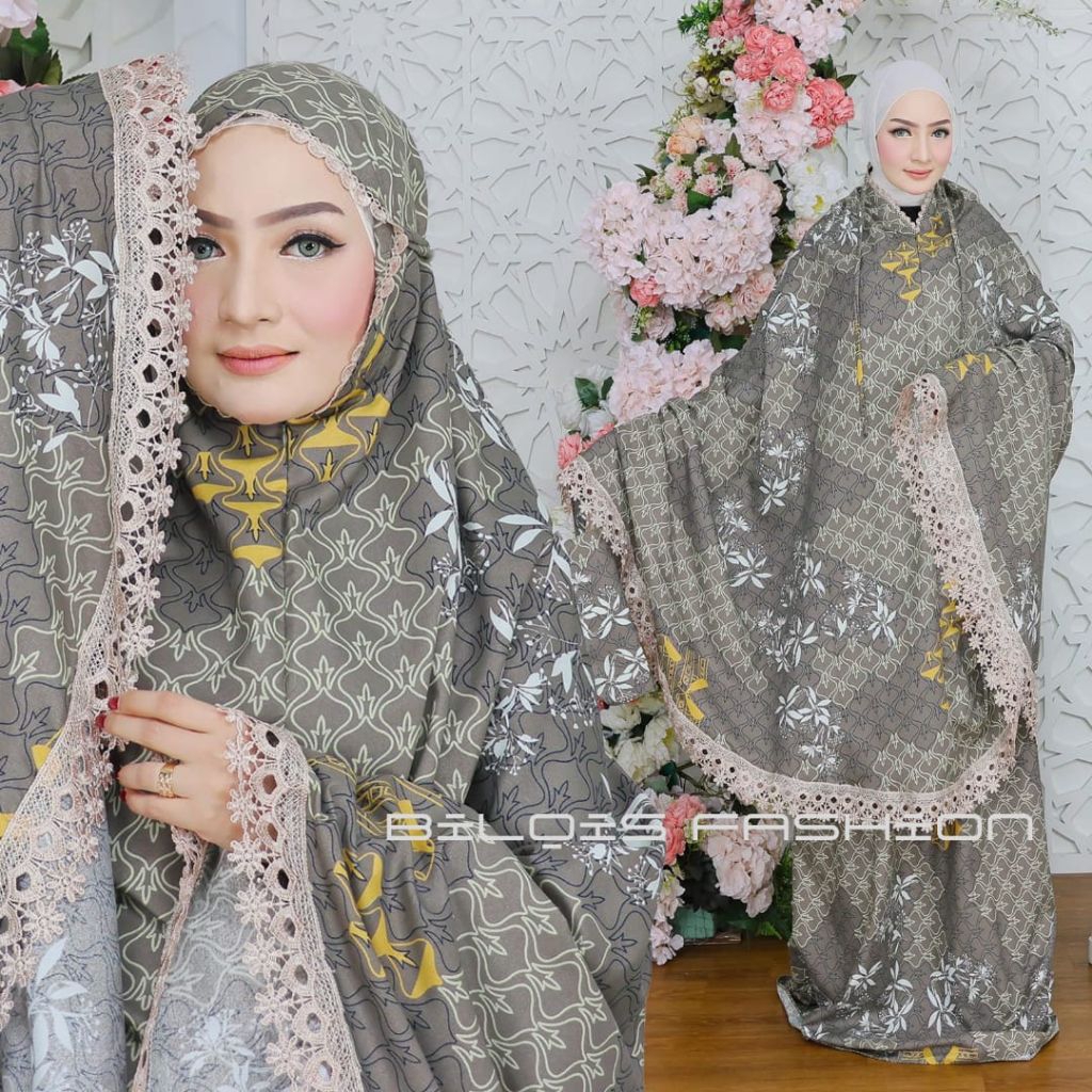 Mukena Dewasa RAISHA 2in1 Resleting Bahan Katun Motip Printing