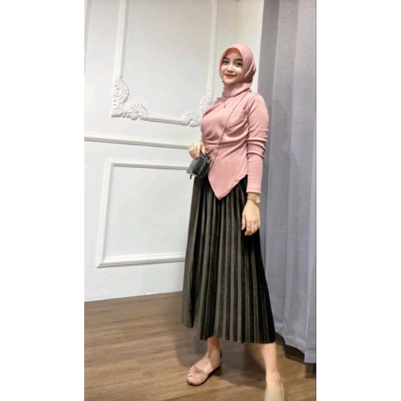 Aulia - Rok Bludru Velvet Plisket Premium // 100℅ Asli Import