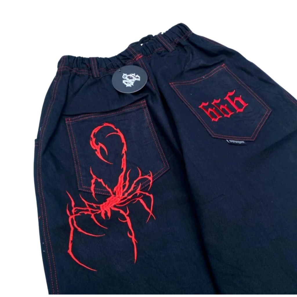 NOTBADCLUB || CELANA JEANS BAGGY BALLON HITAM BORDIR SCORPION || SC666