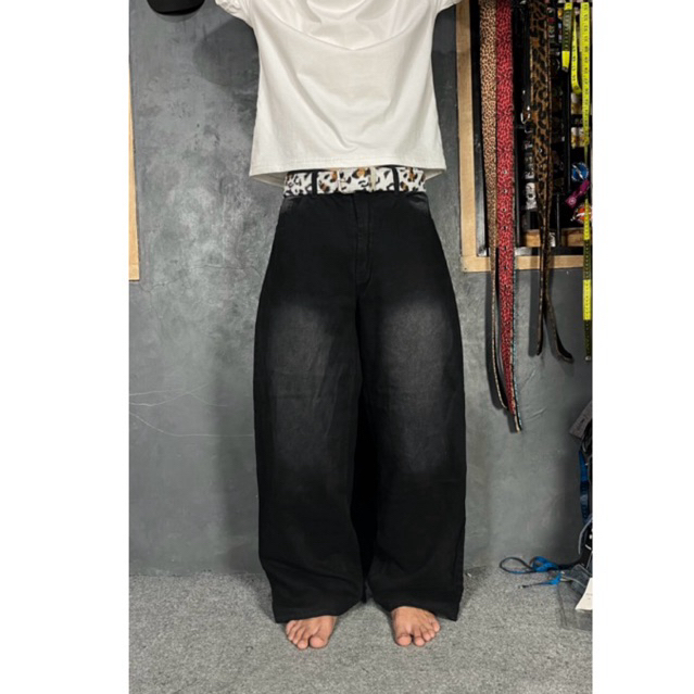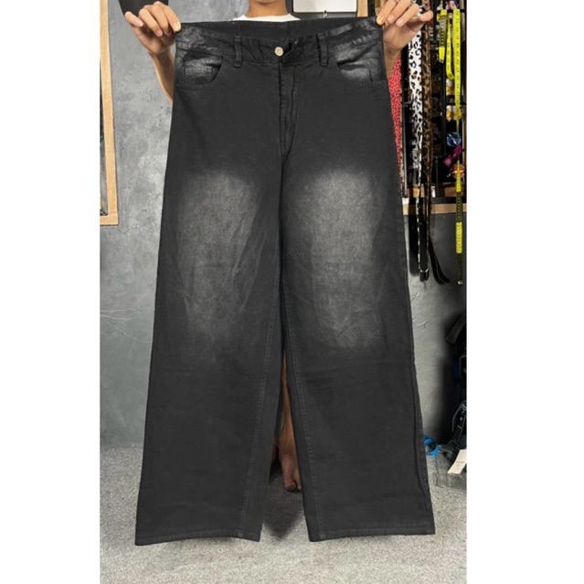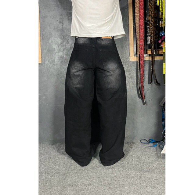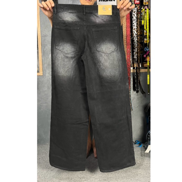RH Baggy Loose Jeans Pria Black Spray Size 28-34 bahan Jeans Gray Gramasi 13,3 ozz tebal enak pakai