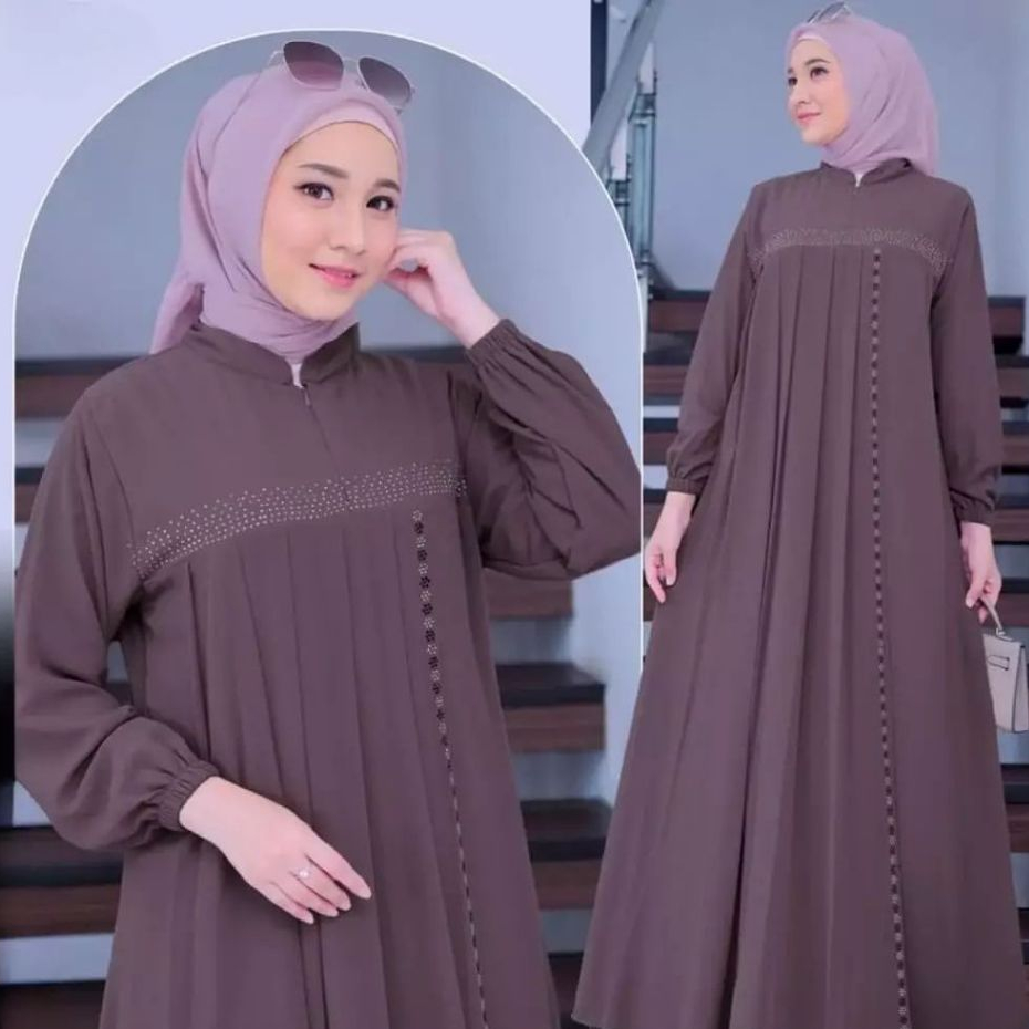 Gamis Azzahra Terbaru 2024 Payet Swarosky Mewah Dress Kondangan Kekinian Bahan Ceruty Pakaian Muslim