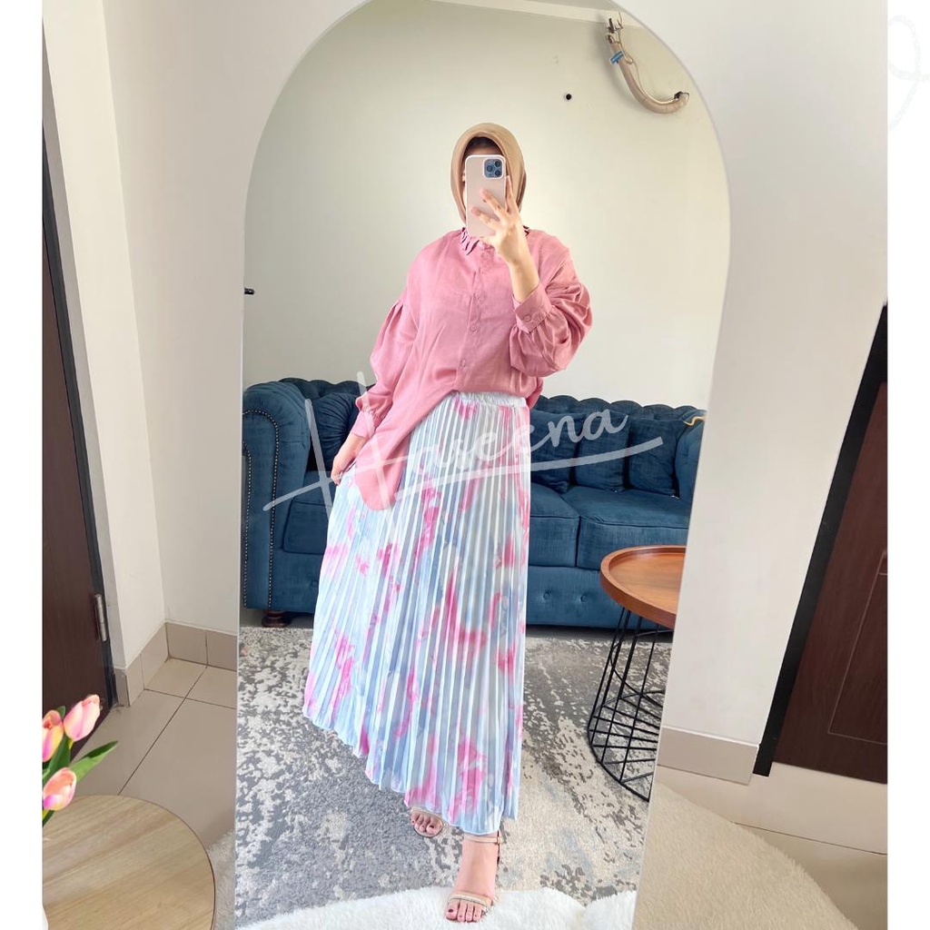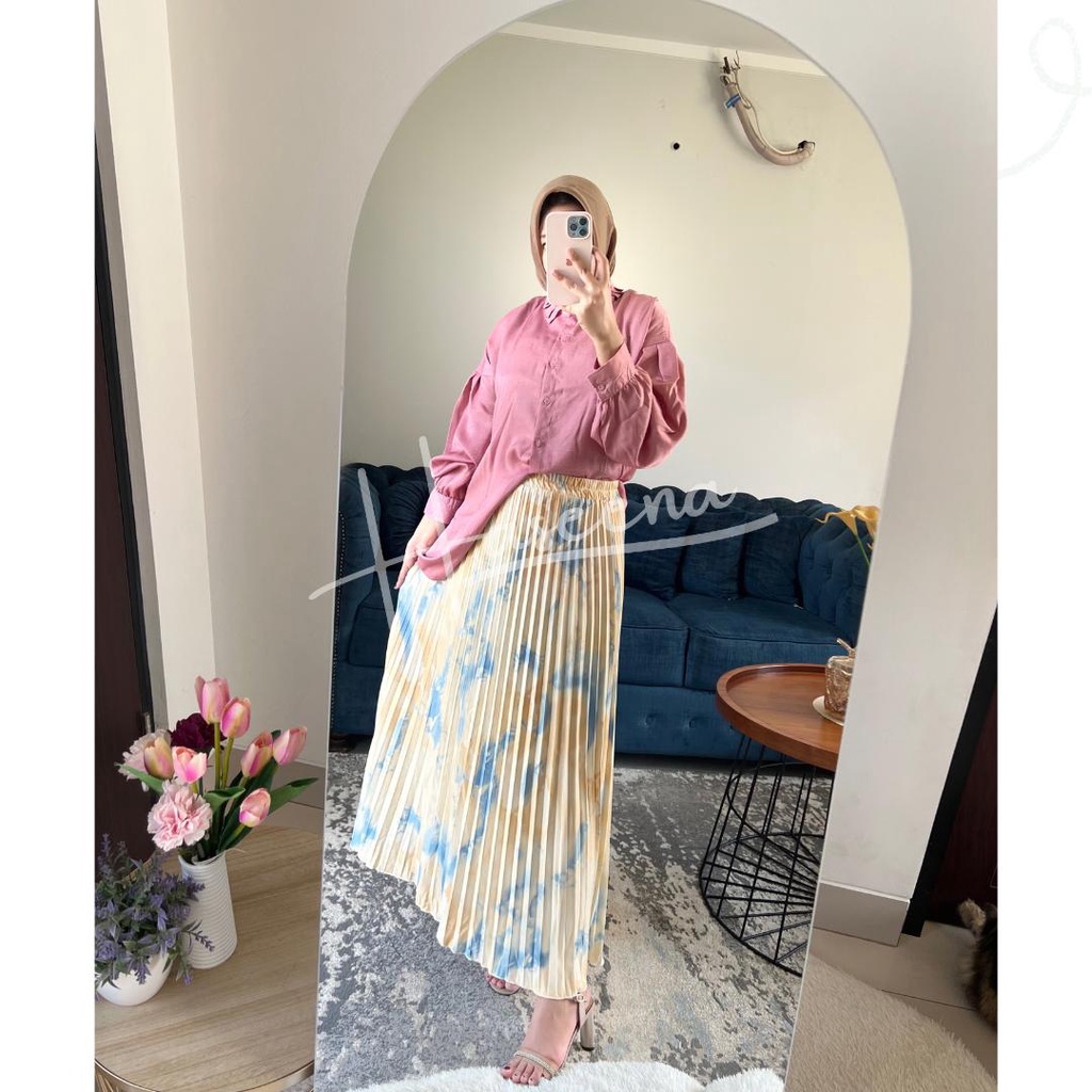 Haseena Rok Plisket Ceisya Motif Marble Bawahan Wanita Anti Nerawang