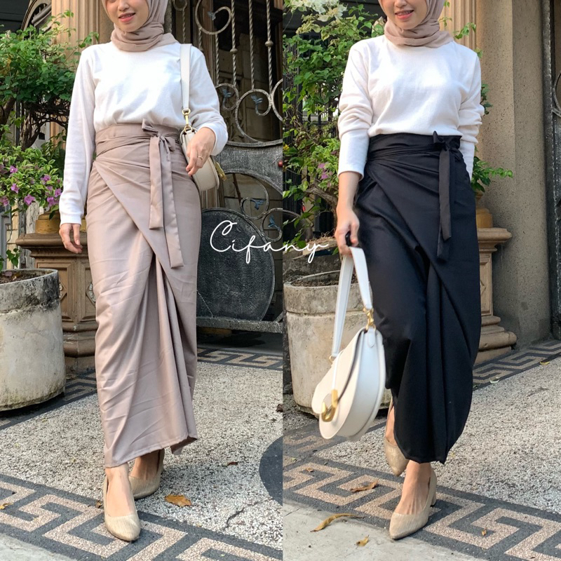 Cifany Wrap Skirt - Rok Lilit Polos Cotton Premium - Antea wrap skirt - Spilt skirt