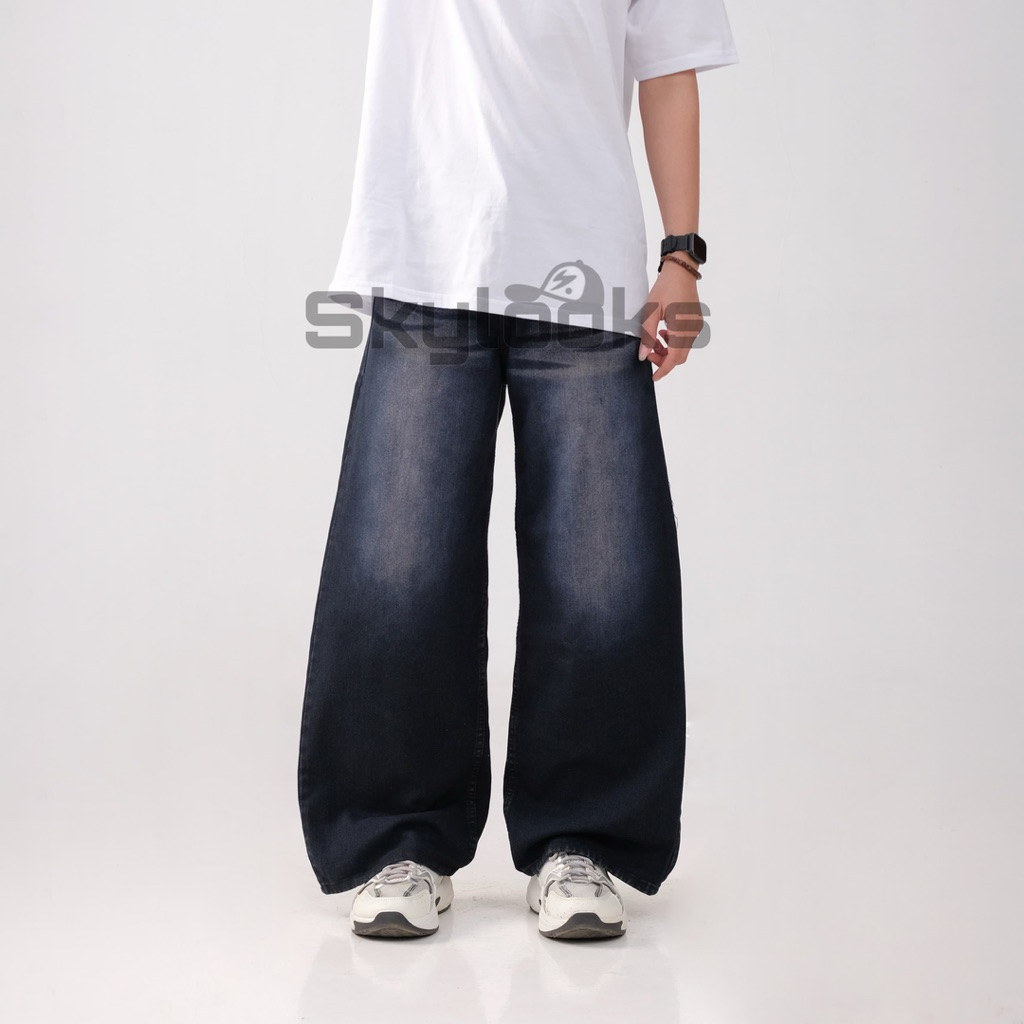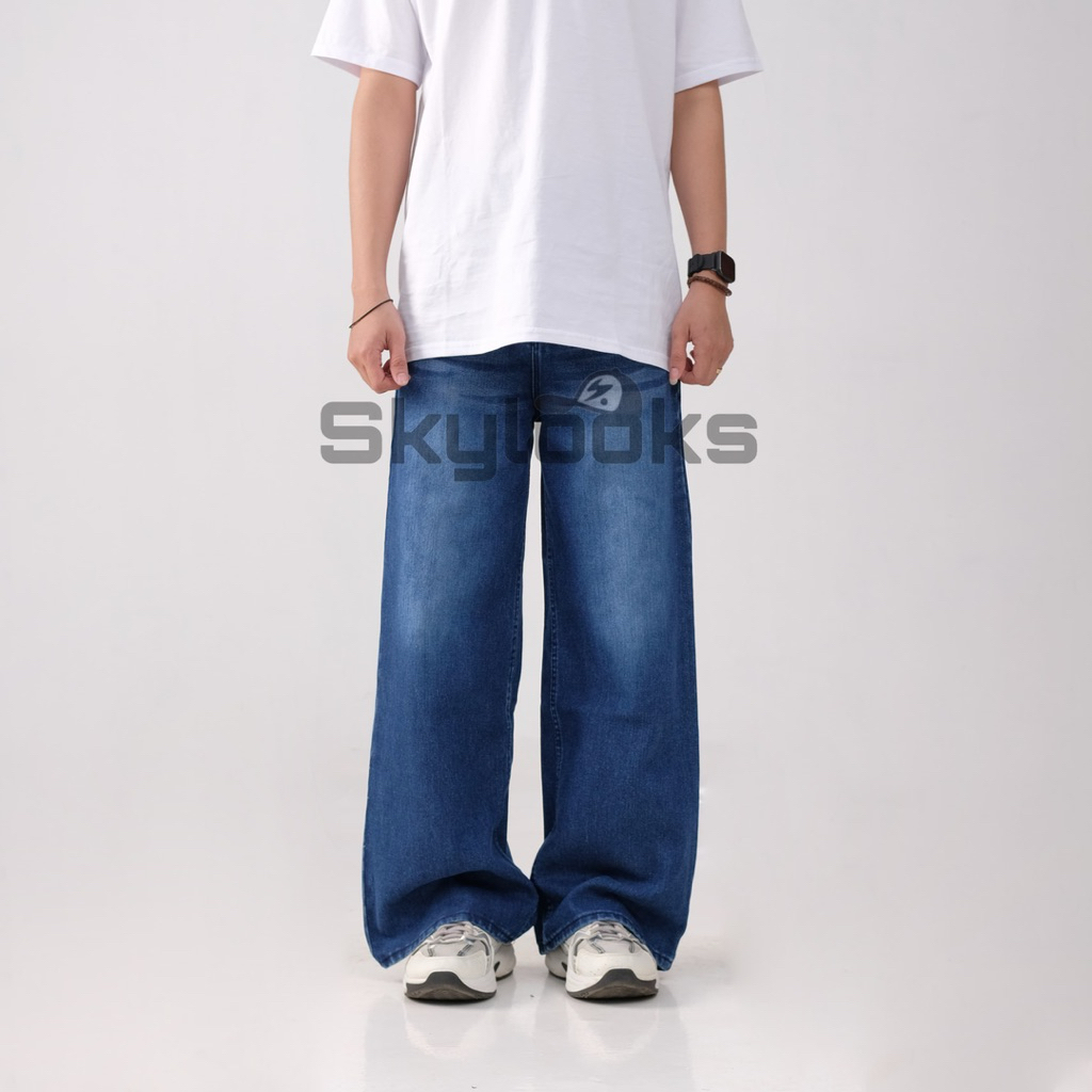 Unisex Celana Jeans Panjang Lebar bawah Korean Style Baggy Reguler Washed Fitt Pria dan Wanita