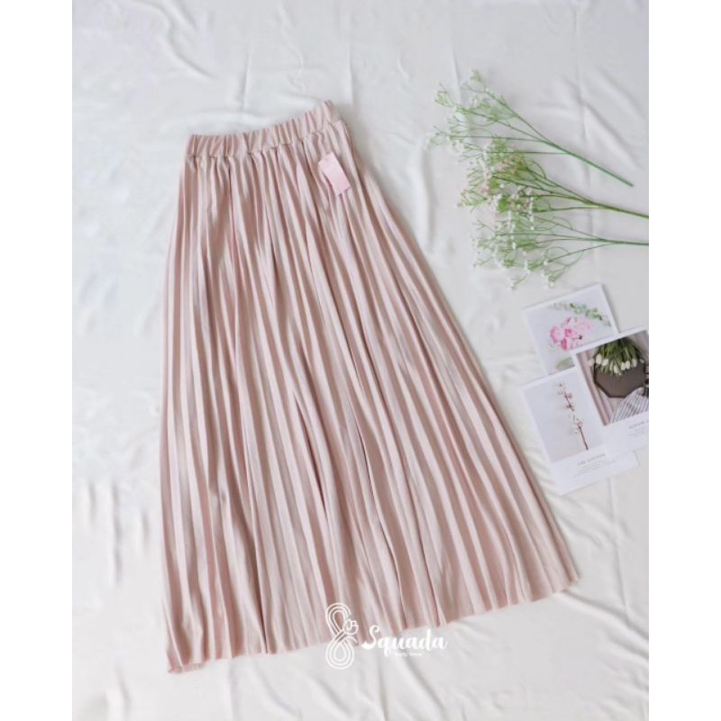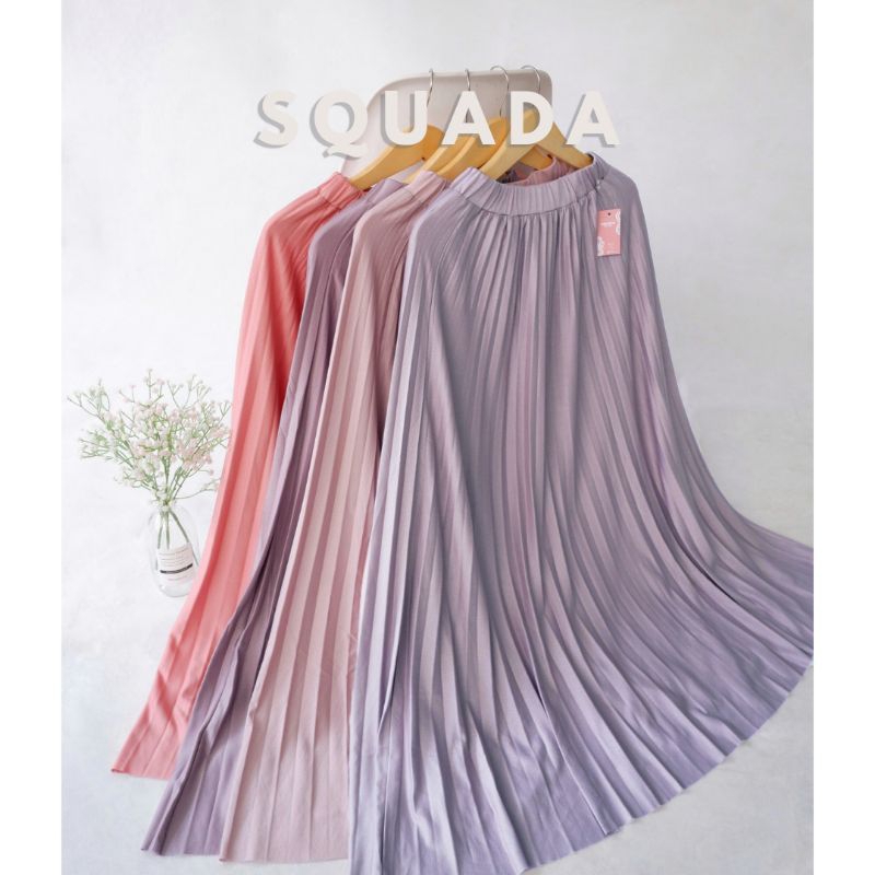 SQUADA - ROK PLISKET PREMIUM A Line Mayung 18 warna lengkap Hitam Putih Navy Pastel Coklat Milo Ijo Botol Fuschia maroon