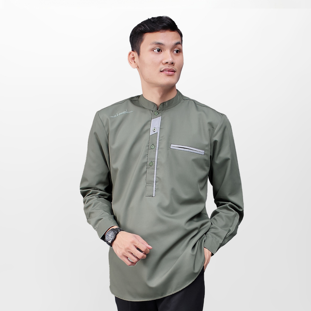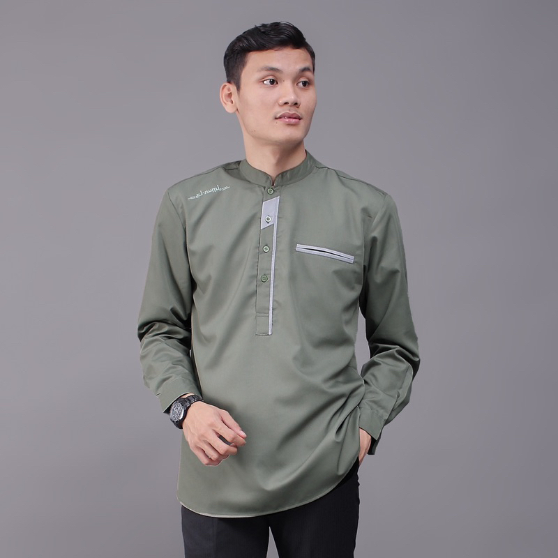 Kemeja Koko Pria Elrumi Lengan Panjang Motif Abizaar Warna Sage