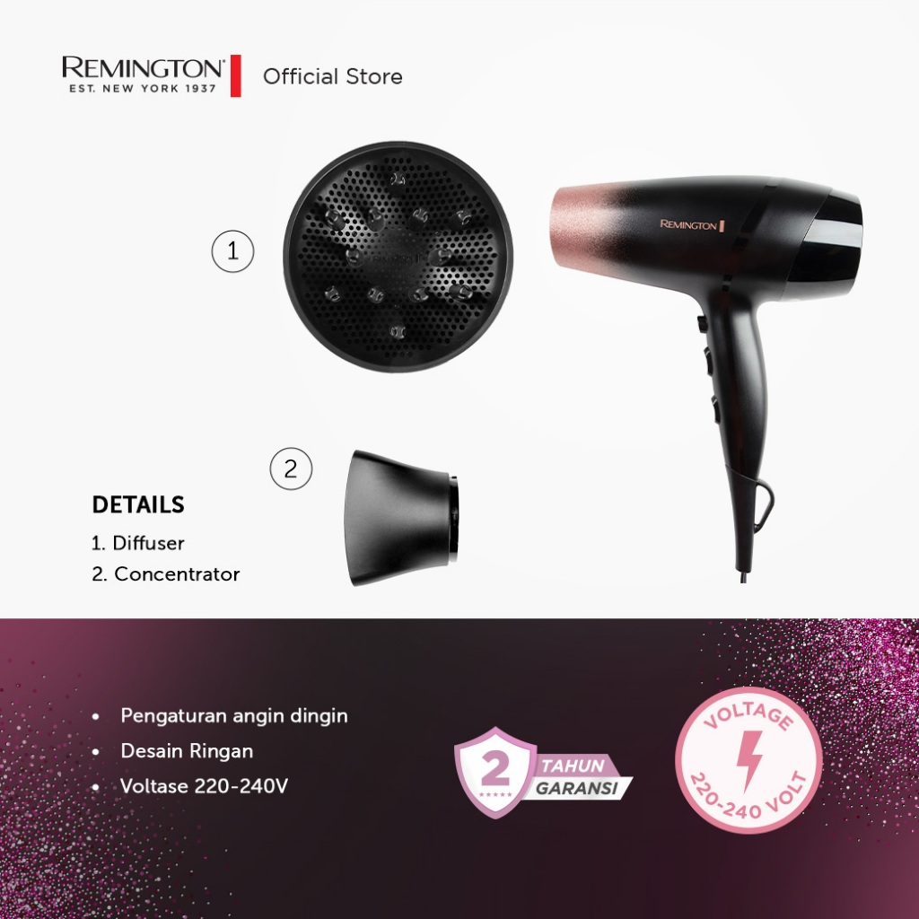 Paket Remington Rose Shimmer Catokan S5305 - Hairdryer D5305