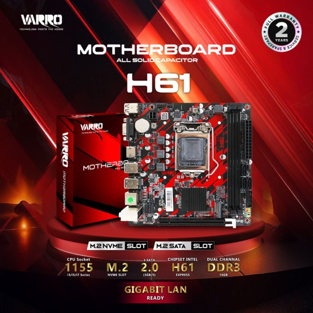 Motherboard H61 LGA 1155 - Paket Mainboard RX 7 / Varro H61 DDR 3 Support Nvme Gratis Fan / Varro H61 Plus Processor Intel Core i3/i5/i7 Gen 2 - 3