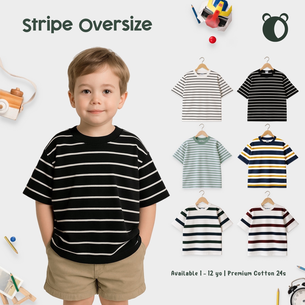 Kaos Anak Kuokabasic Salur Oversize Baju Stripe Anak Unisex Motif Garis Anak Premium 24S