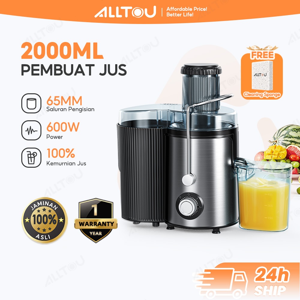 ALLTOU Slow Juicer 1500ML Multifungsi Pembuat Jus 75MM Large Kaliber Blender Juicer Extractor Pemisah Ampas Jus Mesin