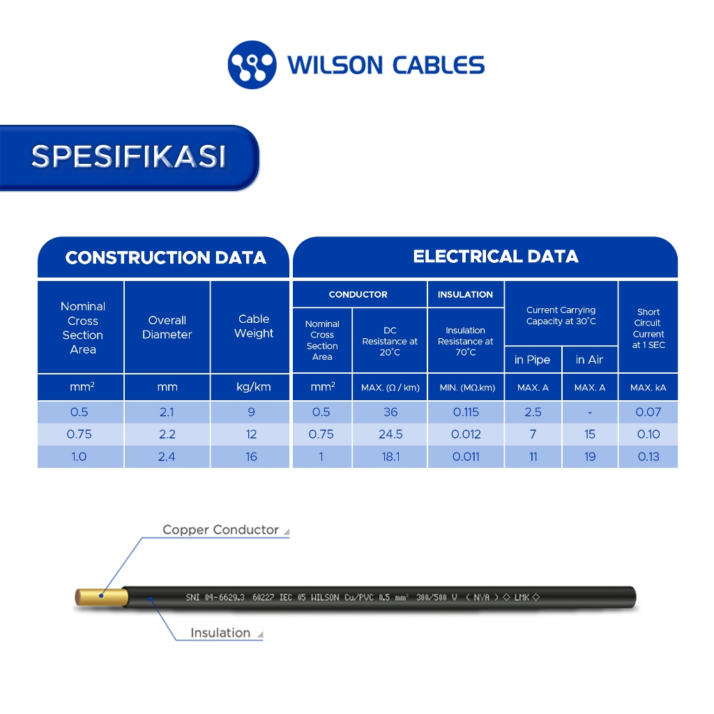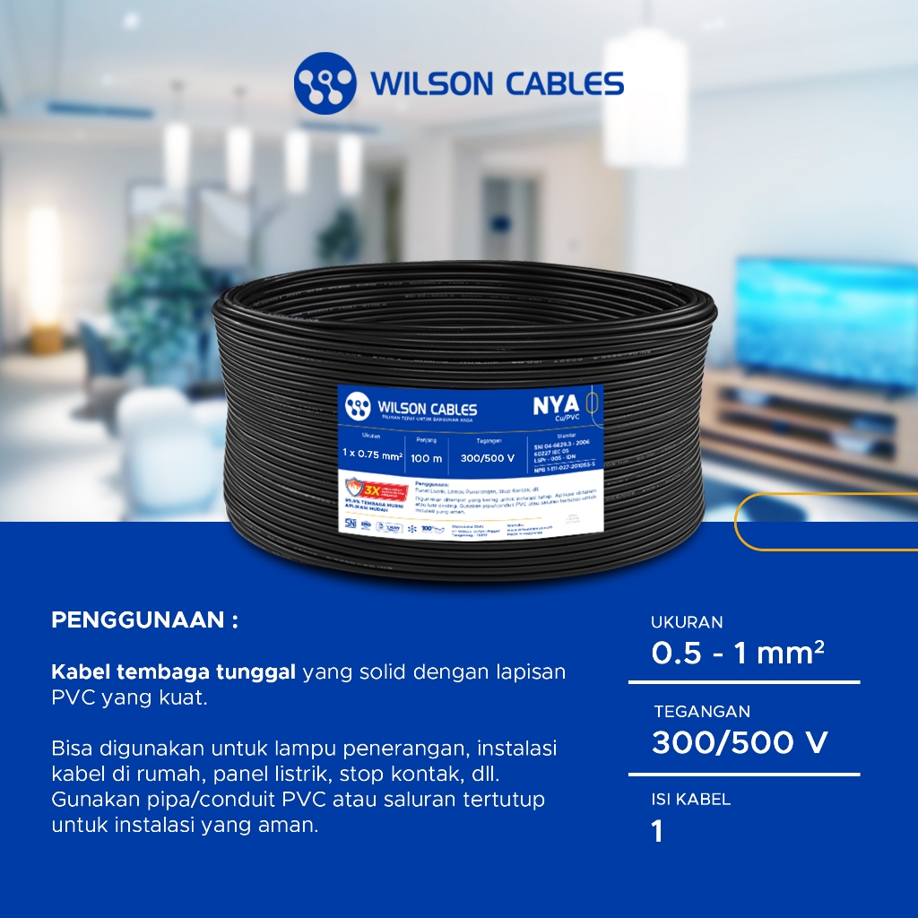 WILSON CABLES - NYA 0.75 mm² (100 Meter) - Kabel Listrik Tembaga Kawat