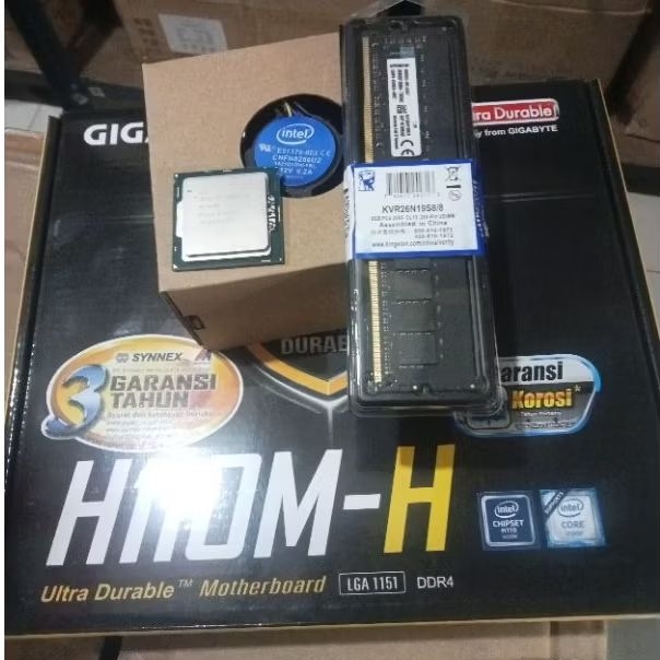 PAKET SIAP RAKIT MOBO H110 GIGABYTE ORI / PROC CI5 6500 + FAN / RAM 8GB DDR4 BARU
