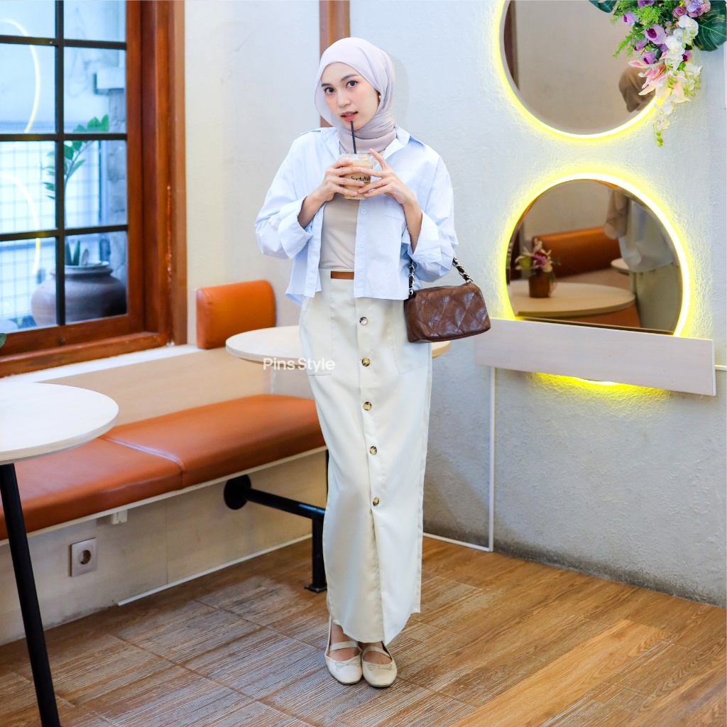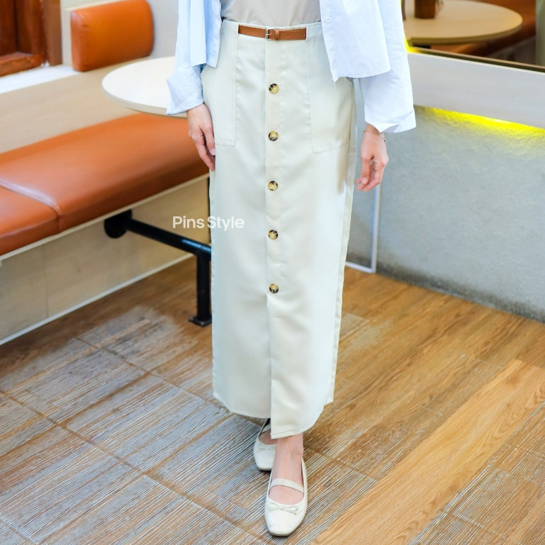 PINS Arin Skirt - Rok Span Wanita Korean Style Midi Panjang Elegan Semi Wool Free Belt