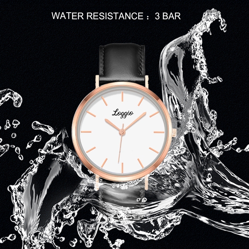 Jam Tangan Wanita Tipis, Kulit Kecil Loggio Bulat Strap Tali Leather Elegan Quartz Analog Dial