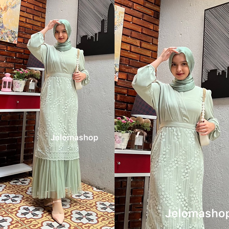 Cahya gamis / gamis busui friendly shakila combi tille + brukat