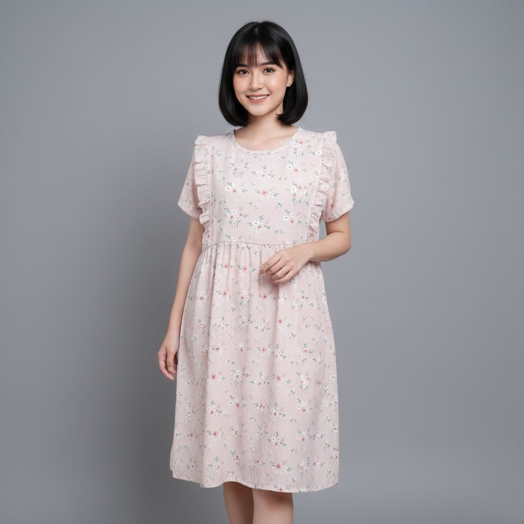 Baju Dress Menyusui Bukaan Samping Kanan Kiri | Daster Rayon Busui Friendly Kerah Oval Vintage
