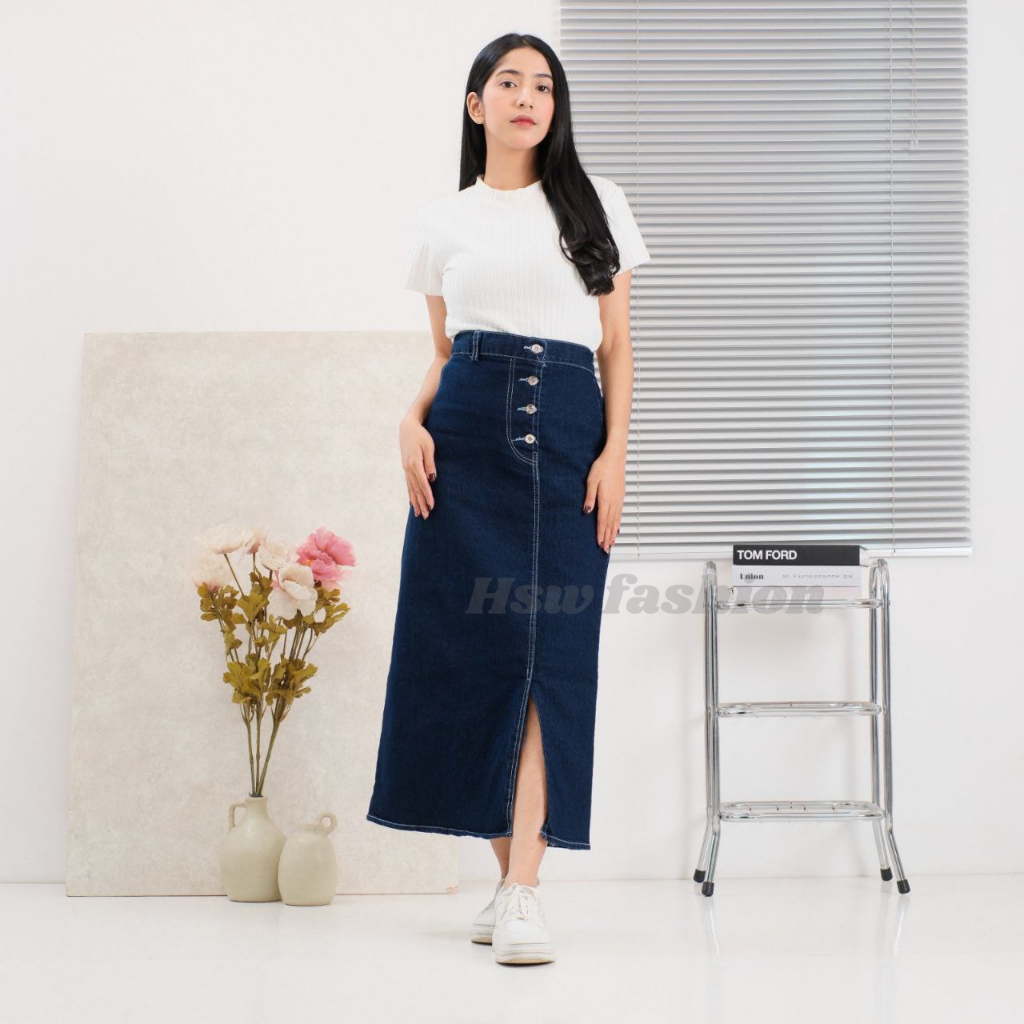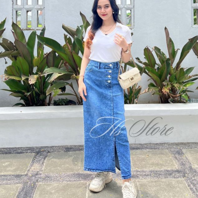ROK JEANS HAIGHWAIST BELAH SAMPING KOREAN STYLE ROK A-LINE // PRABO SKIRT JEANS ROK JEANS PANJANG
