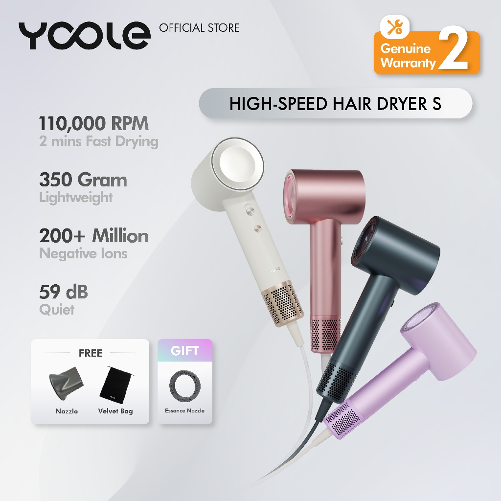 [YOOLE] High Speed Hair Dryer S/teknologi ion negatif/Kontrol suhu cerdas/Cepat kering
