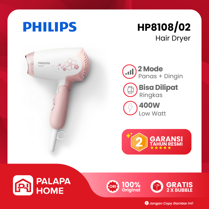 Philips Hair Dryer HP8108/02 Low Watt Foldable Bisa Dilipat | Pengering Rambut Phillips HP 8108