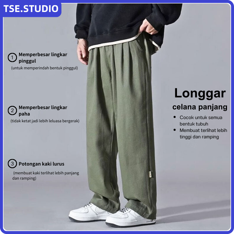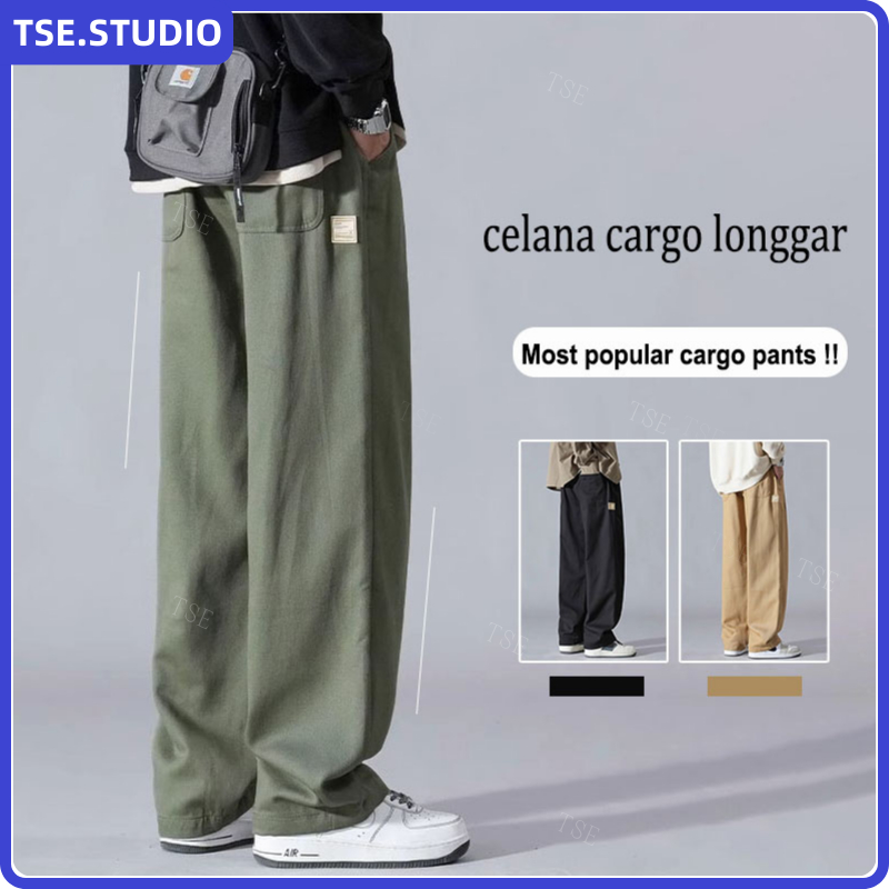 Celana Cargo Panjang Pria Oversize Casual Baggy Straights Korean Style Fashion Wide Leg Cargo Pants
