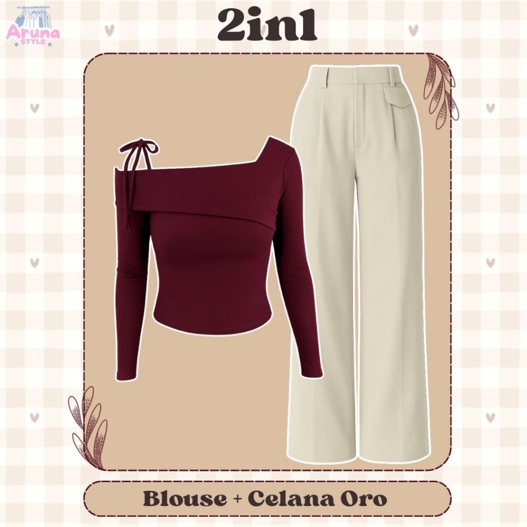 Setelan Ala Cewek Korea Casual Sabrina Tali, Celana Oro, Belt One Set Remaja Wanita Kekinian AS5J