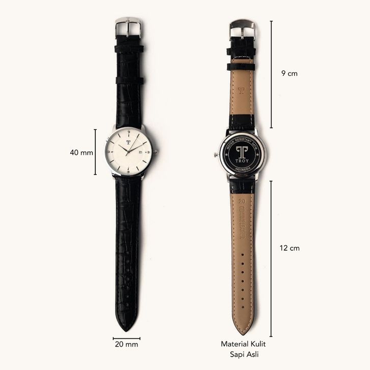 TROY Jam Tangan Pria Elegan Klasik Tali Strap Bahan Kulit Sapi Asli Analog Men Watch Mewah Eleanor