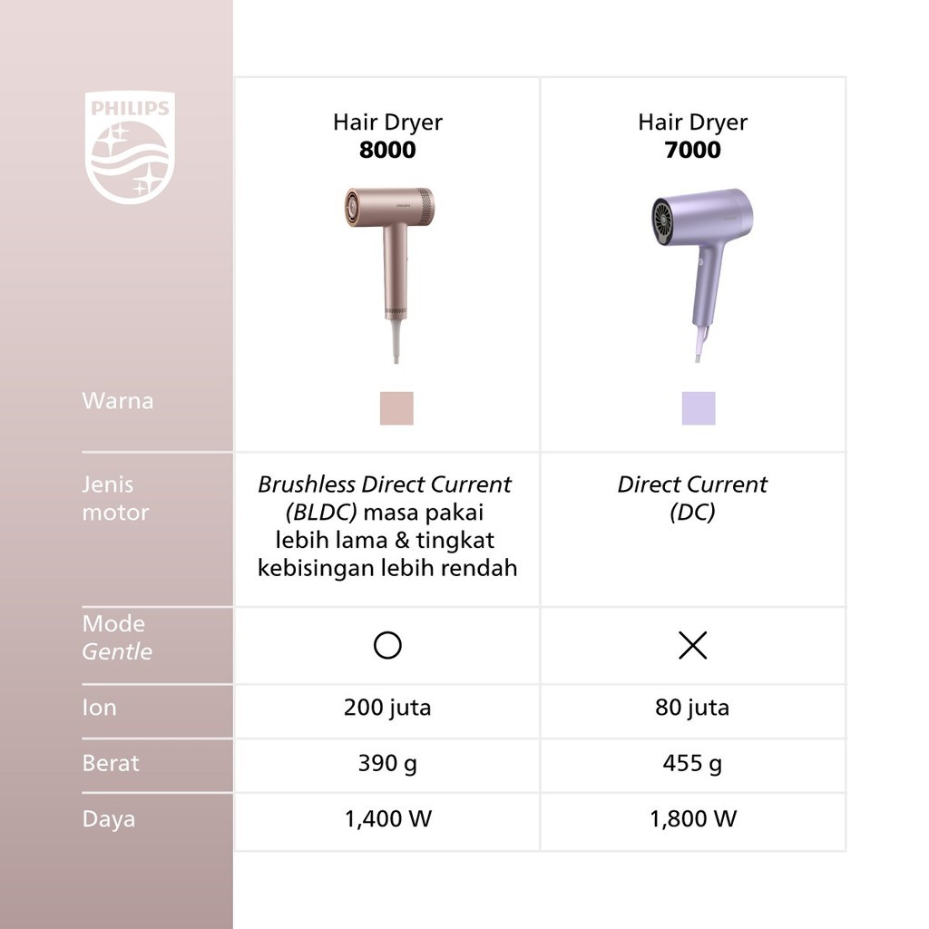 Philips | Hair Dryer 8000 BLDC | Pengering Rambut | Jaga 100 PERSEN kekuatan rambut, kering dalam 3 menit | BHD837/00