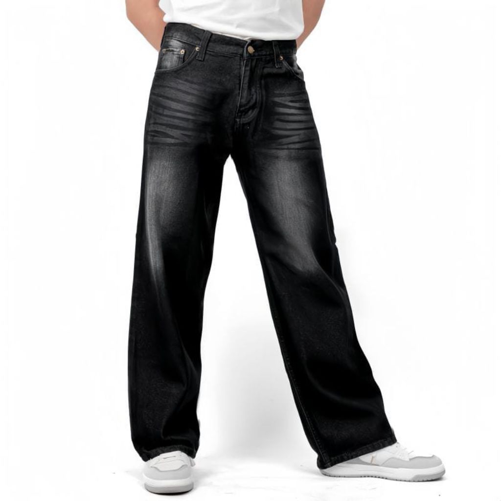Celana Jeans Wide leg Wisker Lebar Gombrong Skena Black Wisker Pria Loose Fit jumbo big Baggy Skena