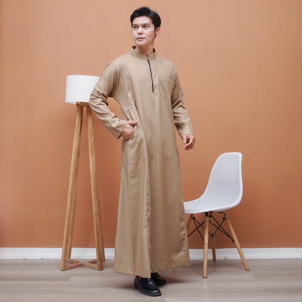 Jubah Gamis Pria Saudi Zipper Premium Katun Toyobo Qulhu