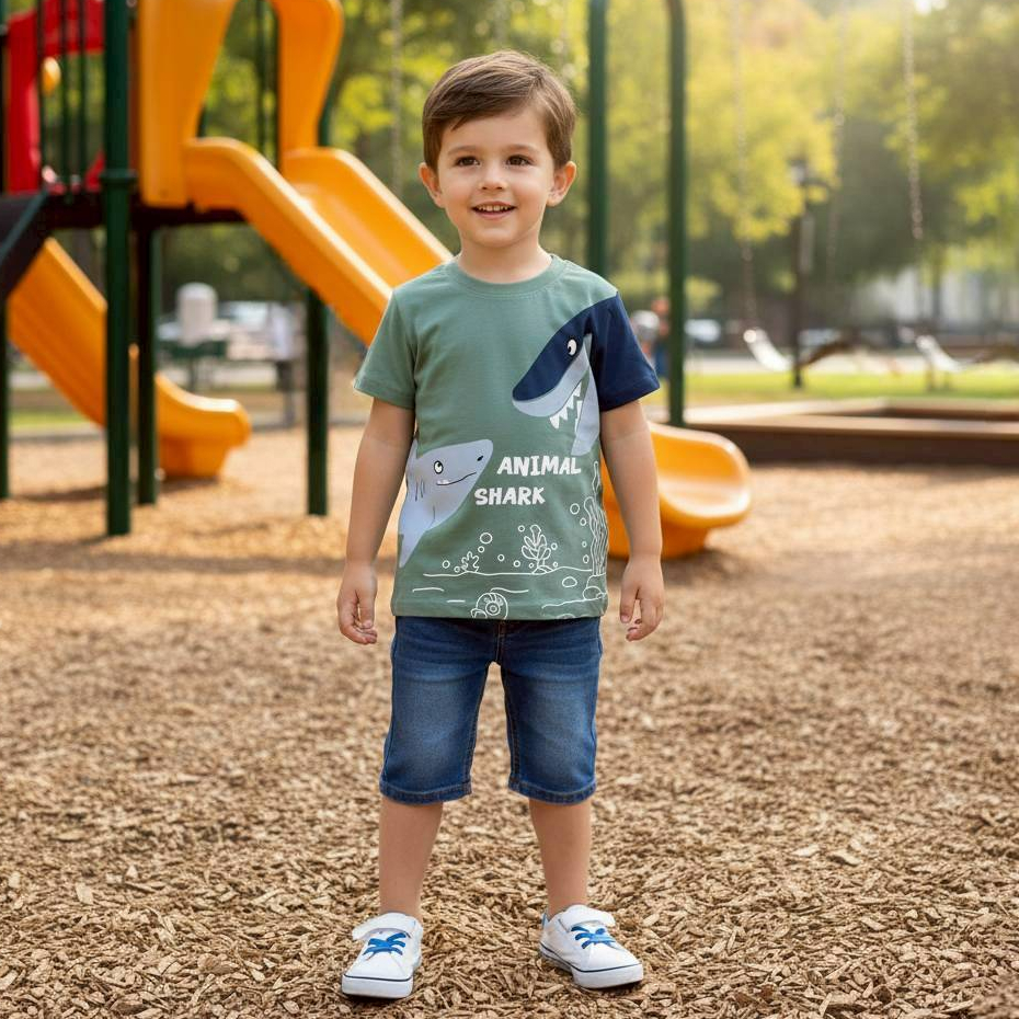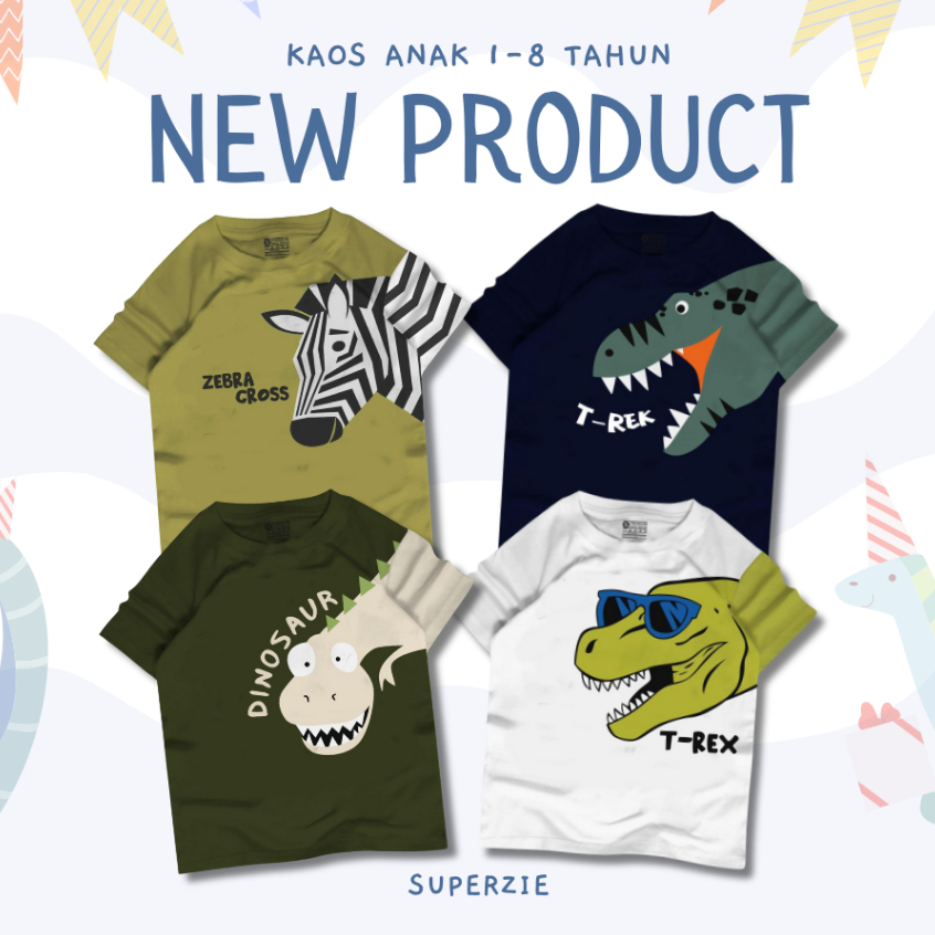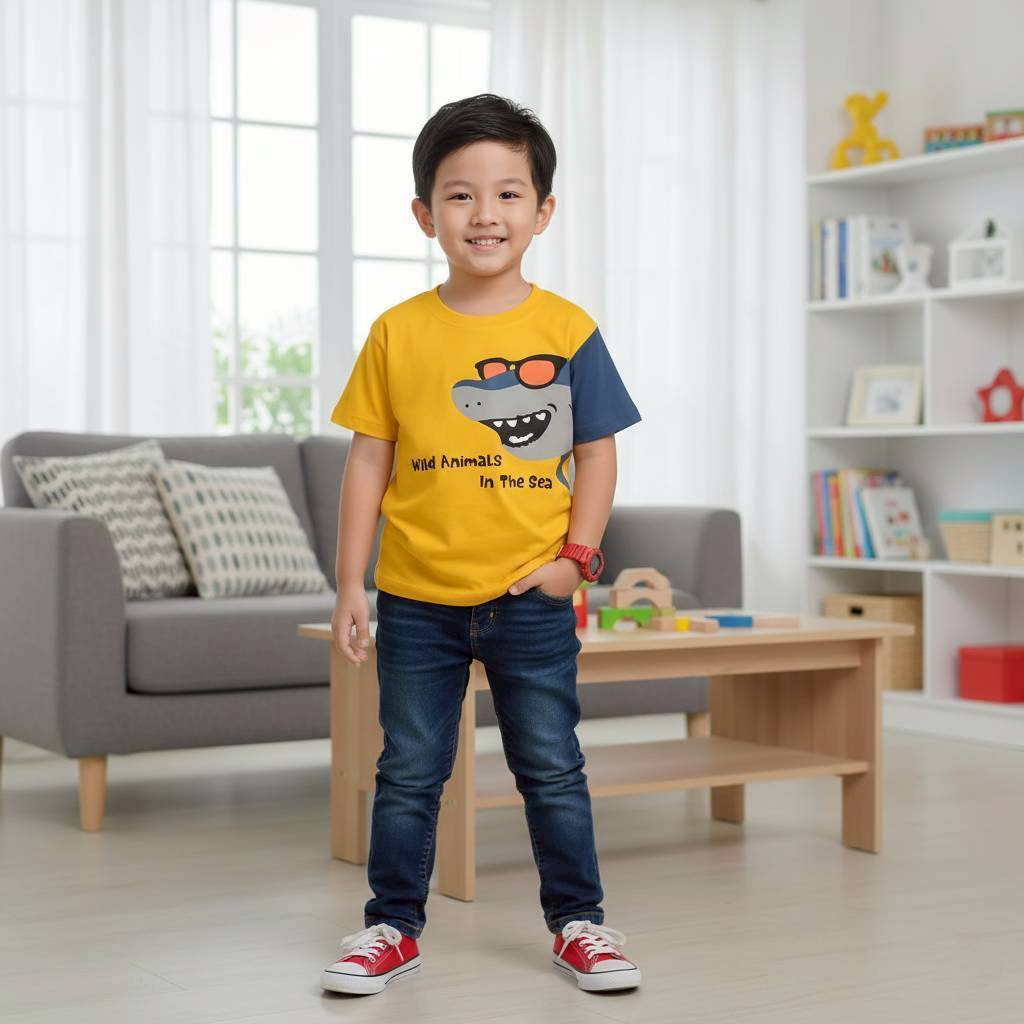 Kaos Anak Laki Laki Rgkids 4-12 Tahun Sl Series Binatang Kartun Dino Zebra Ikan Hiu Buaya Shark