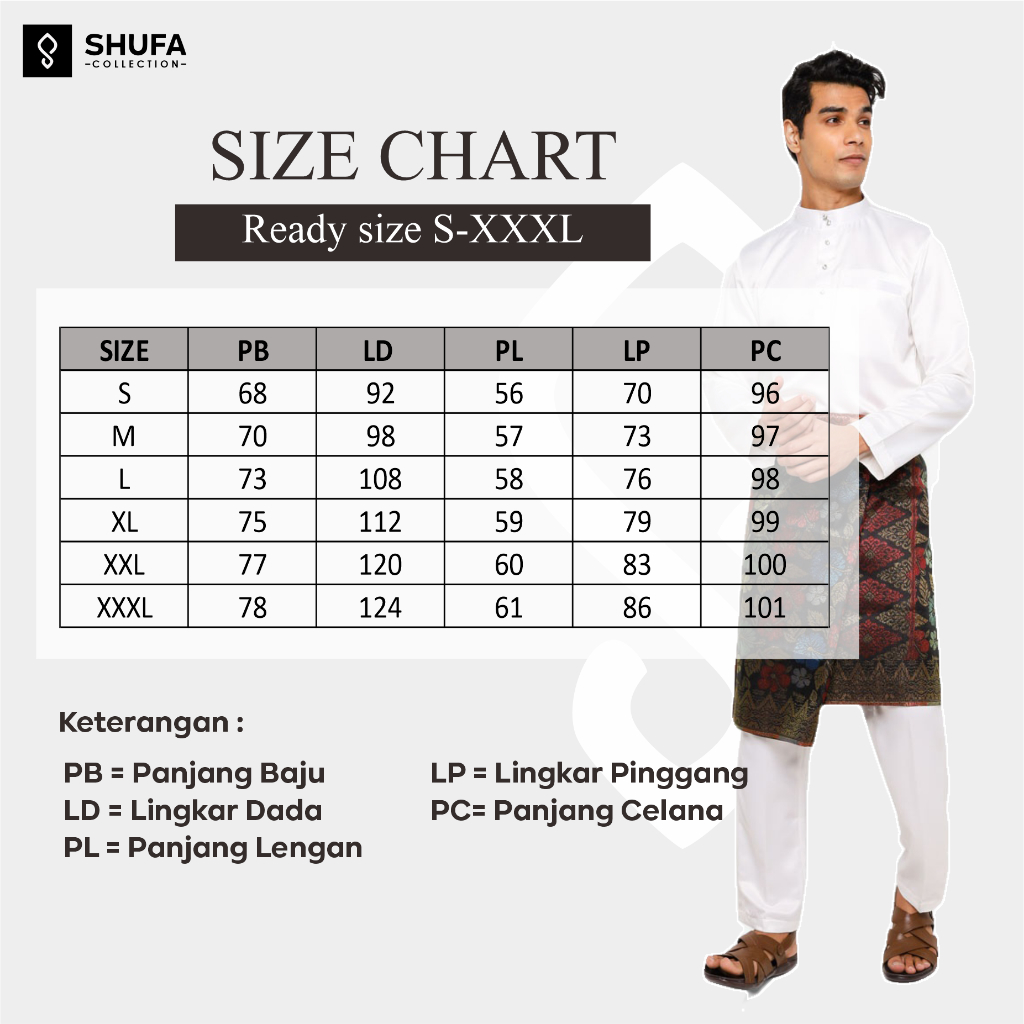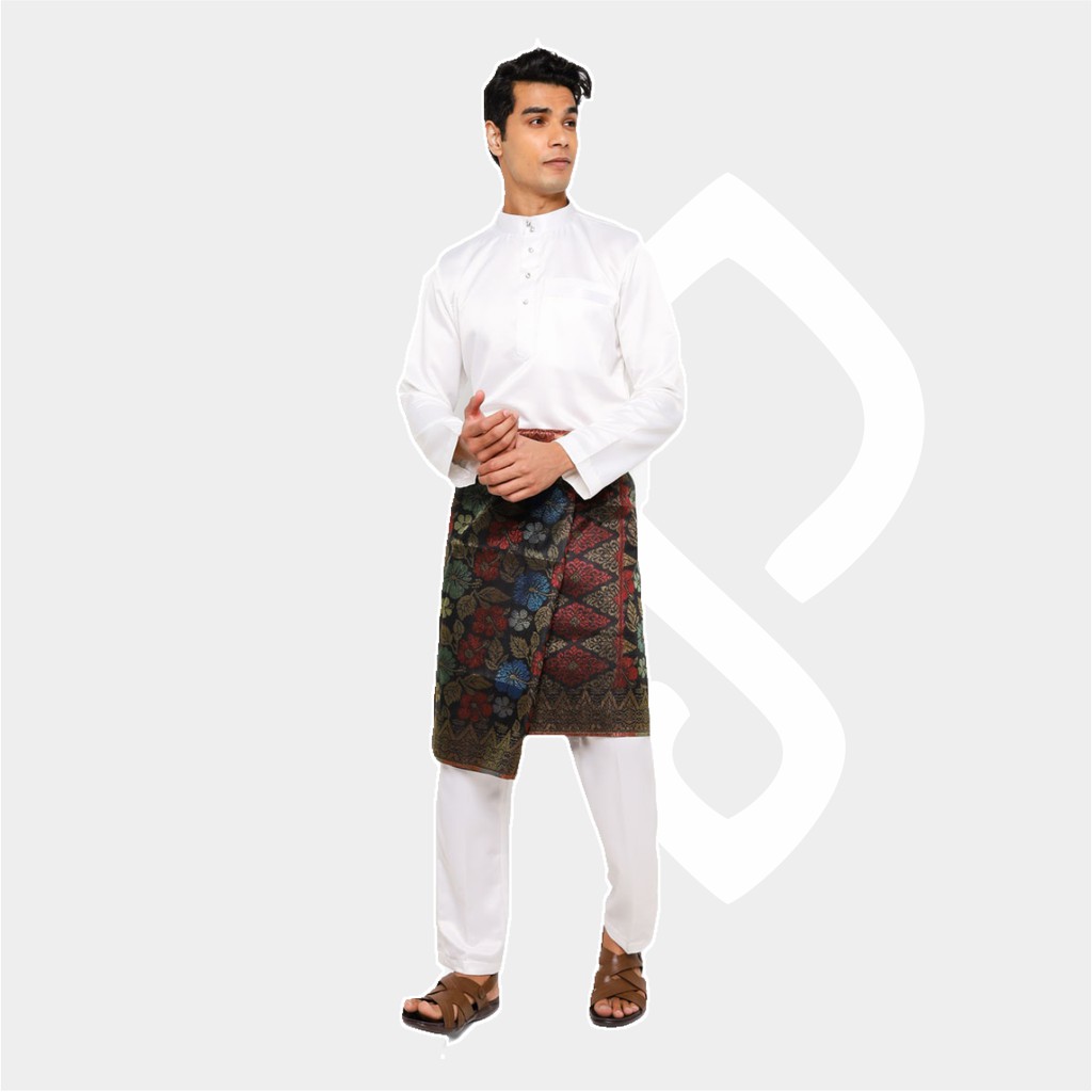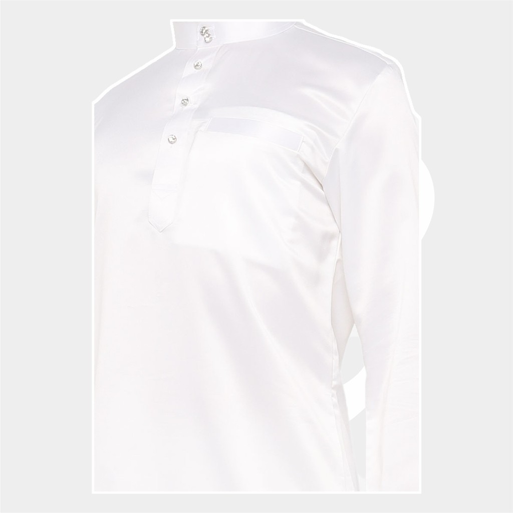 Baju Koko Pria Melayu Cekak Musang Bahan Satin Setelan Muslim Kurung Teluk Belanga Putih (White)