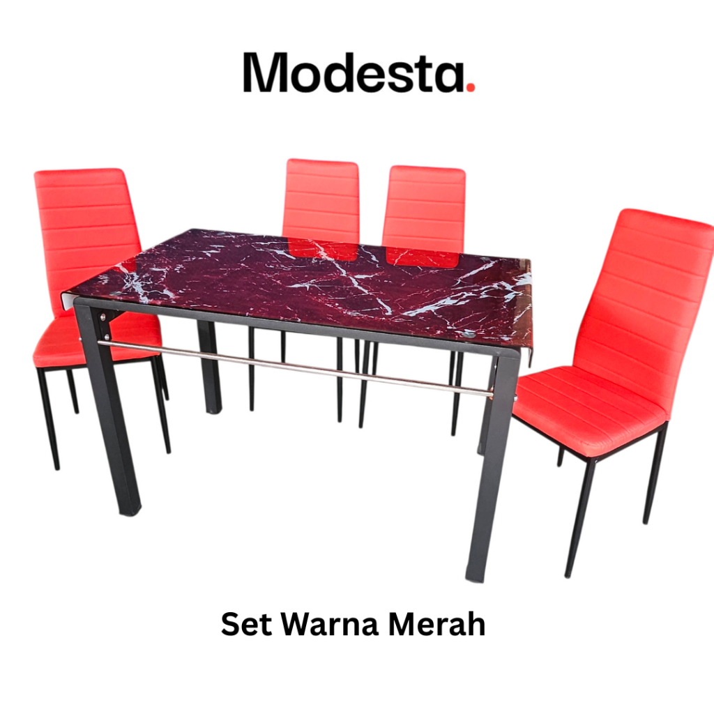 Meja Makan Kaca Tempered Set Ukuran 120x70cm + 4 Kursi. Model Simple Minimalist Untuk Apartment, Ruang kecil