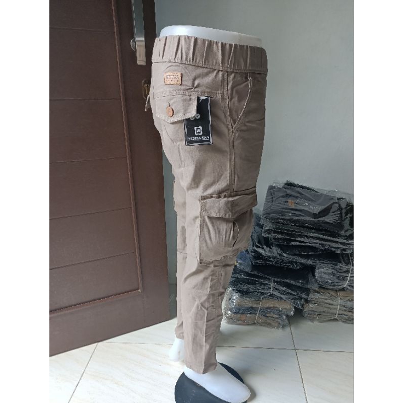 Celana Panjang Cargo-Gunung-travel-Katun Strecth Pinggang Karet Pria Premium