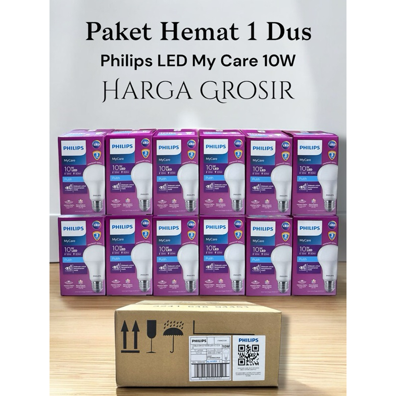 [ PAKET 1 DUS ISI 12 PCS ] LAMPU PHILIPS LED MYCARE 3W 4W 6W 8W 10W 12W [ 3 4 6 8 10 12 ] W WATT BELI 3 GRATIS 1 ORIGINAL BERGARANSI RESMI