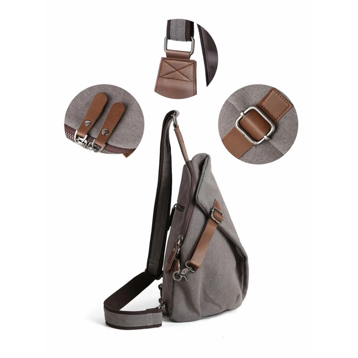 Tas Bahu Selempang Canvas CrossBody Sling Chest Bag Pria Retro Travel