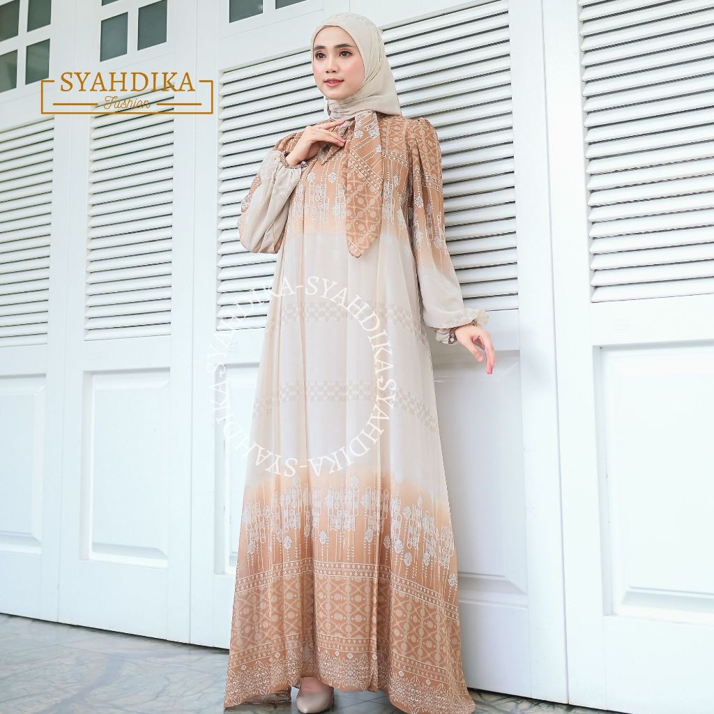 Dress Gamis Wanita Zhafirah Kekinian Ceruty Baby Doll Premium Free Hijab