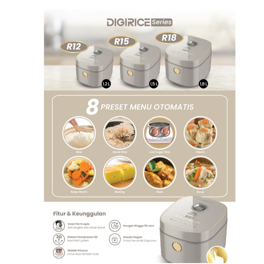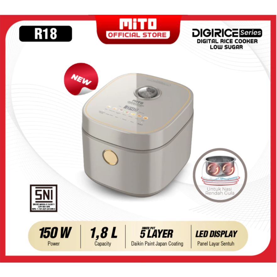 MITO Digital Rice Cooker R12 / R15 / R18 Digirice Series Low Sugar 8 Menu