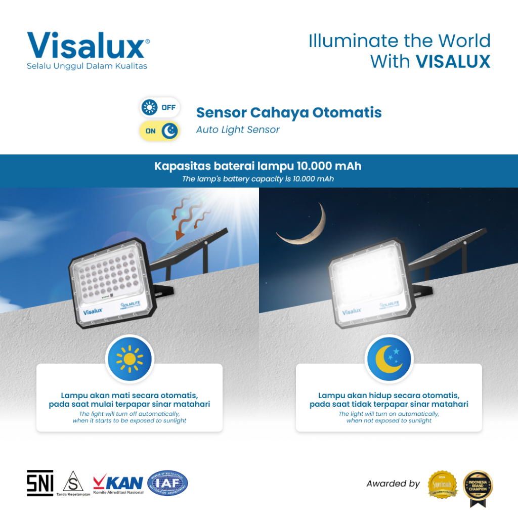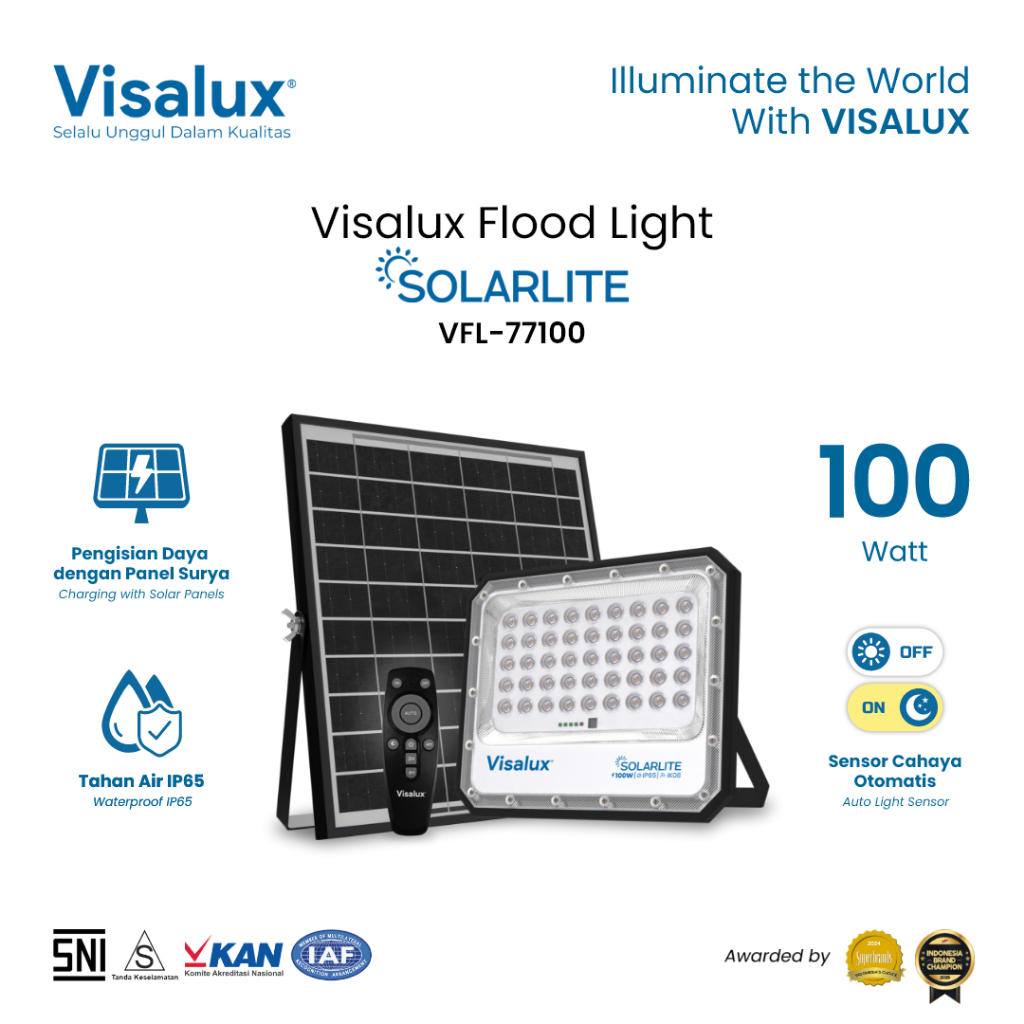 Visalux Flood Light Solarlite 100W - Lampu Sorot Remote Energi Surya Sensor Cahaya Putih (SLT-VFL77100DL)