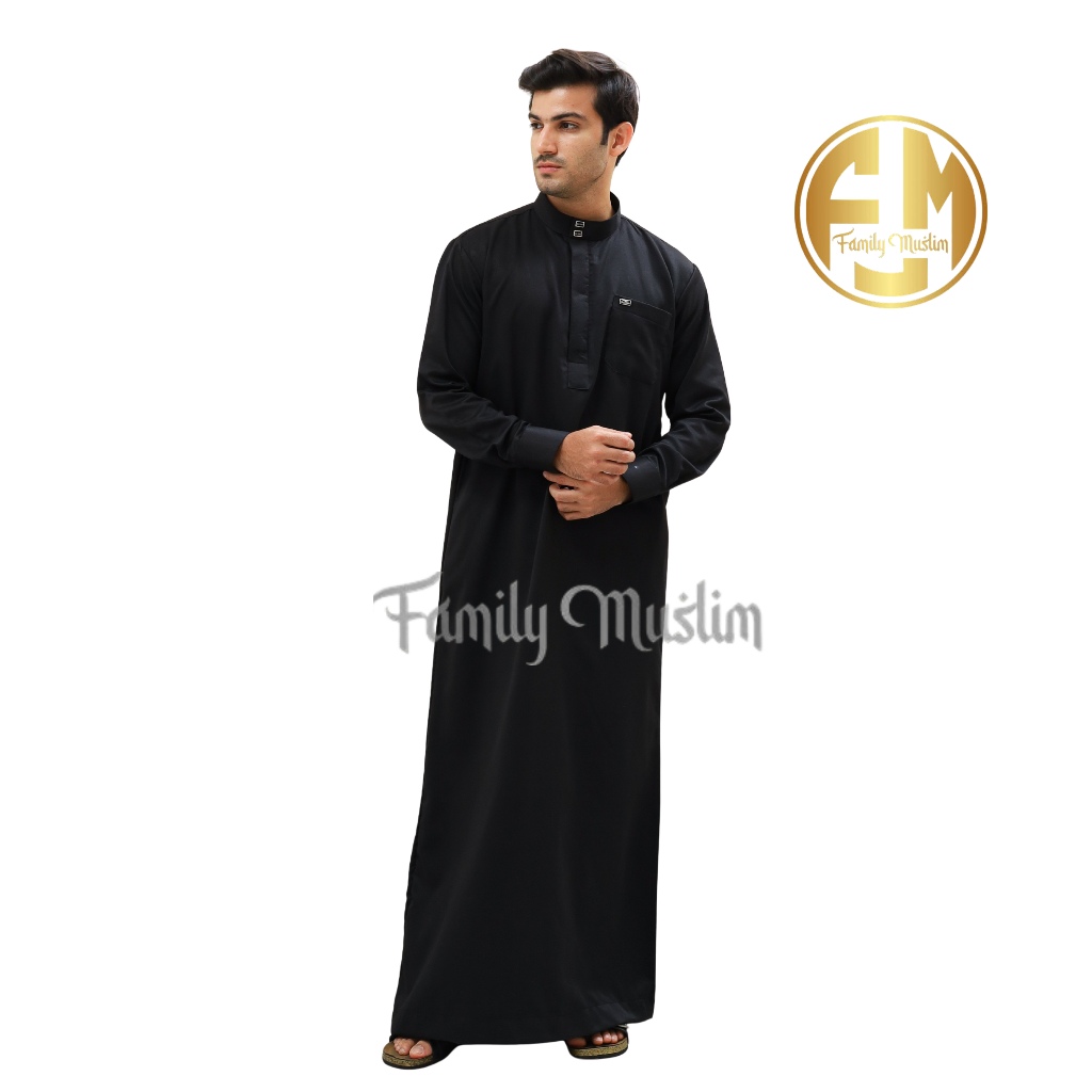 Family Muslim - Jubah Pria Lengan Panjang Slimfit Reseleting Aufar Hitam